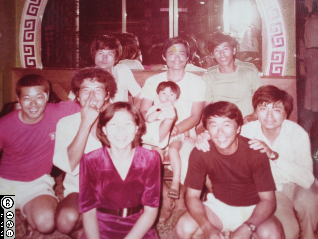 中間抱小孩是現在老闆,坐在老闆左邊微笑者是芳雄。